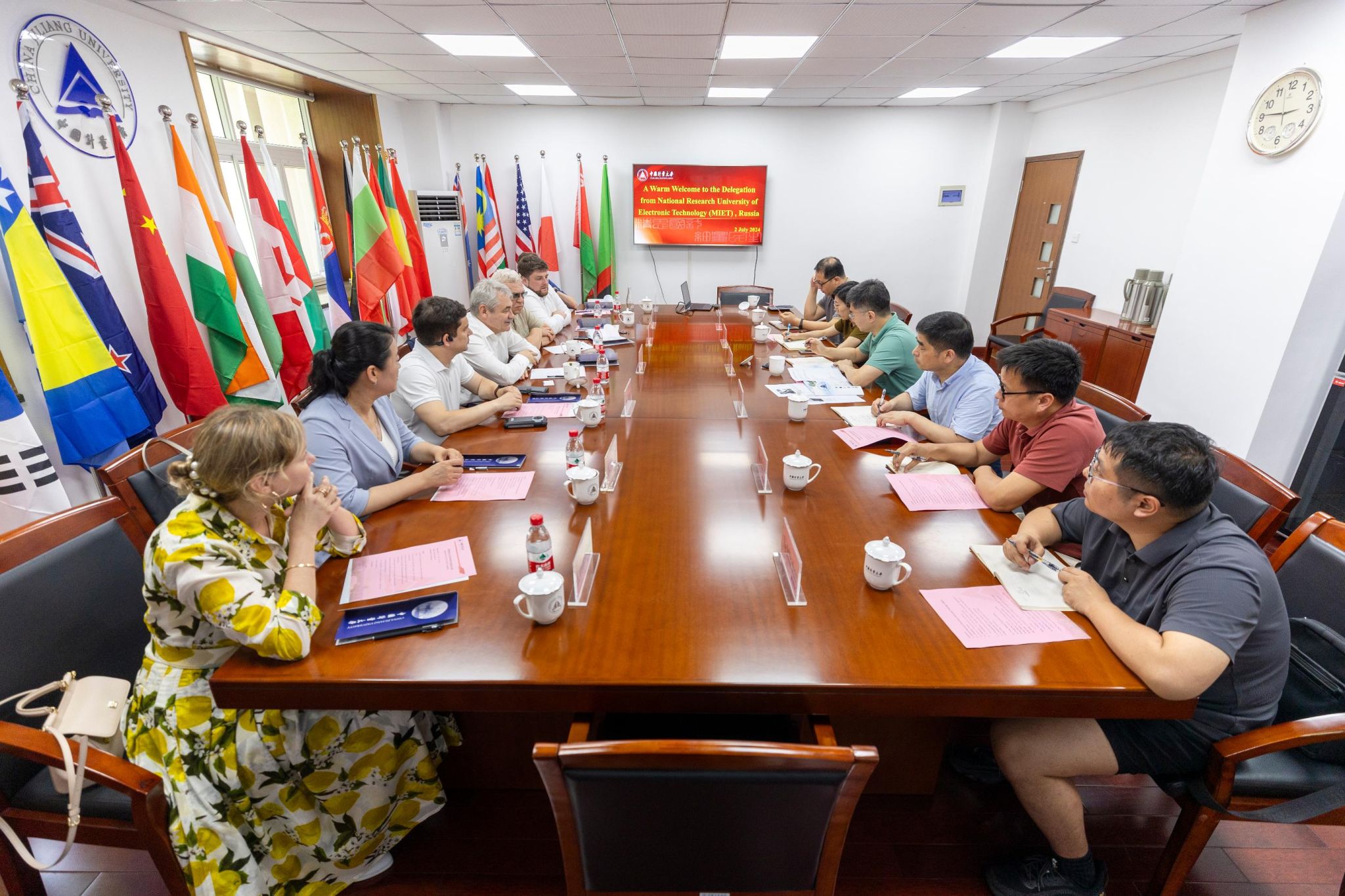 7月2日下午,莫斯科国立电子技术学院校长Vladimir Bespalov、校长高级顾问A.V.Zverev、副校长A.G.Balashov等一行7人来校交流访问。副校长王斌锐在明德楼A216会议室会见客人并主持座谈会,国际处、光电学院和信息学院相关人员参加会谈。