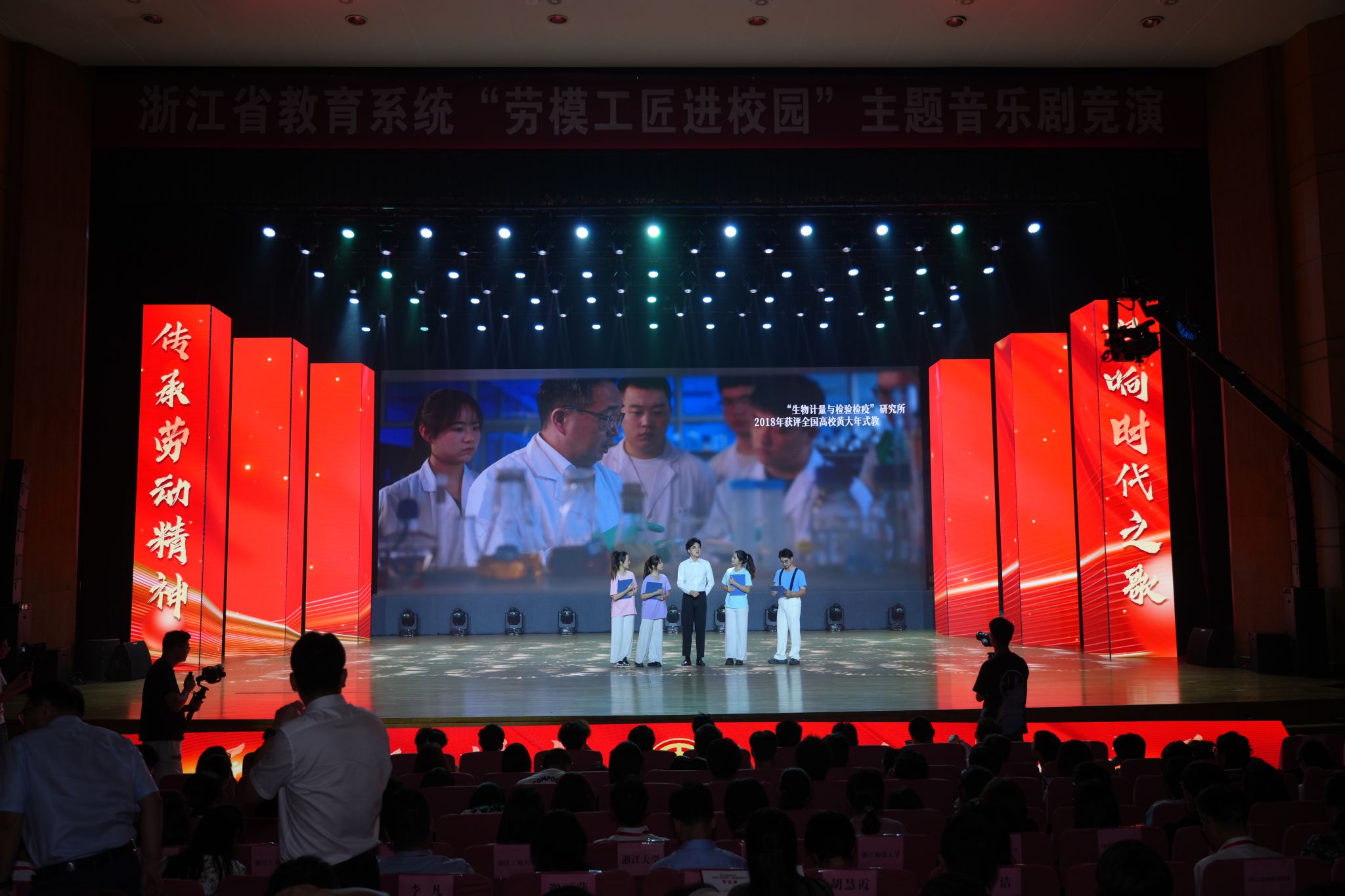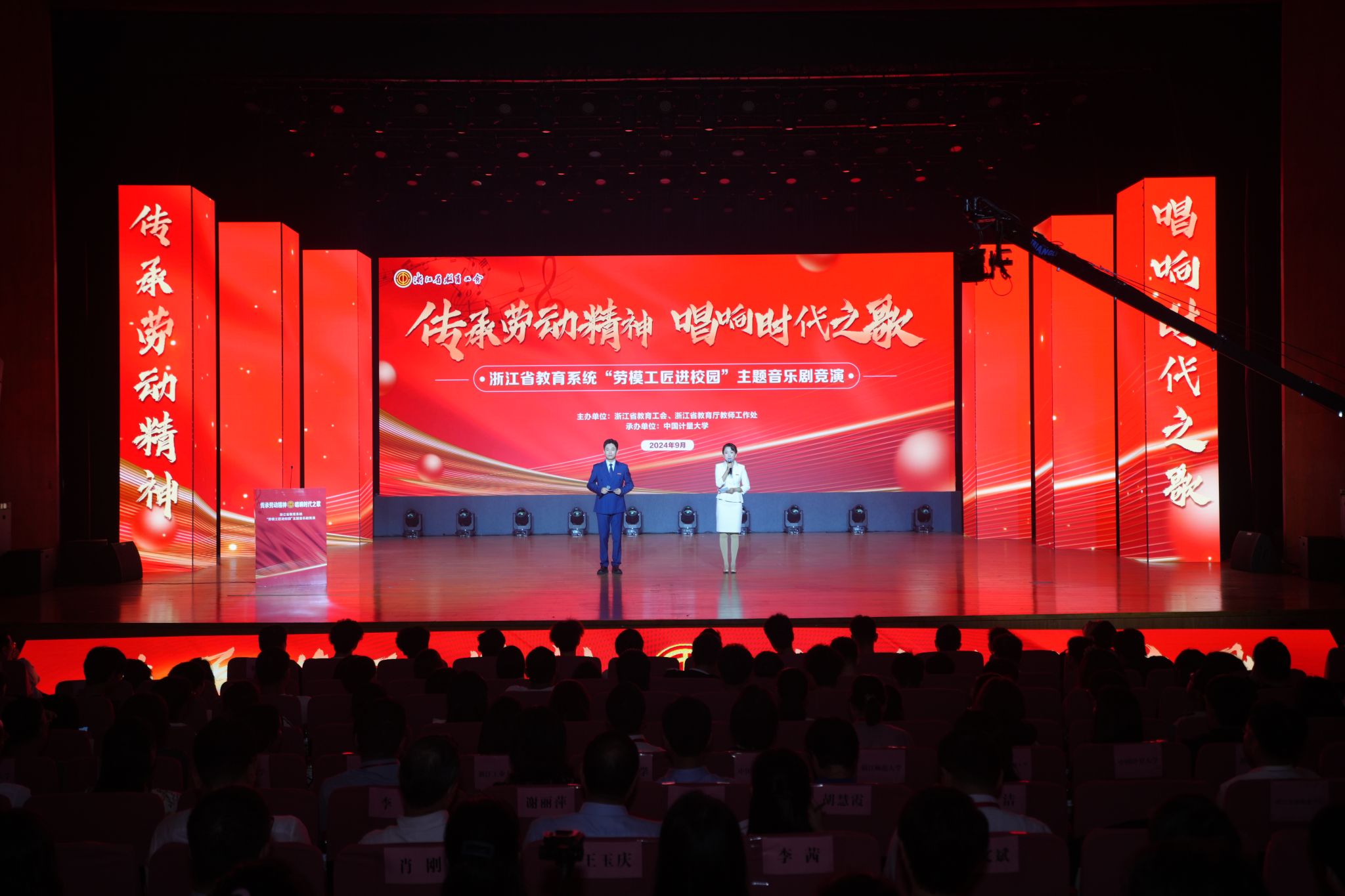 9月25日下午,为庆祝中华人民共和国成立75周年,由我校承办的浙江省教育系统“劳模工匠进校园”主题音乐剧竞演活动在嘉量大会堂精彩上演。本次竞演活动由浙江省教育工会和浙江省教育厅教师工作处共同主办,共吸引了来自全省16个直属基层工会的教职工踊跃报名参加。