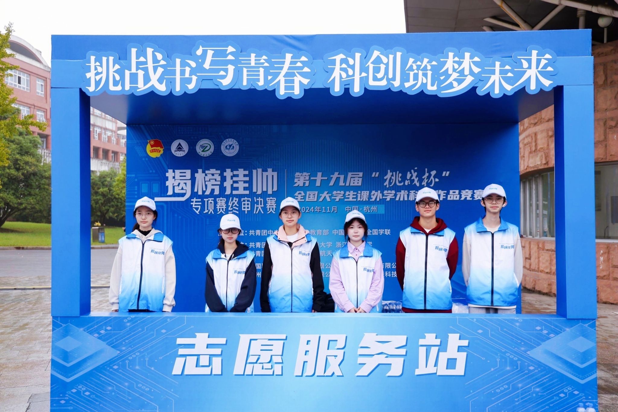 校园内还设有多处互动点“揭榜挂帅”主题展,选手们纷纷前往参观合影留念记录美好回忆。