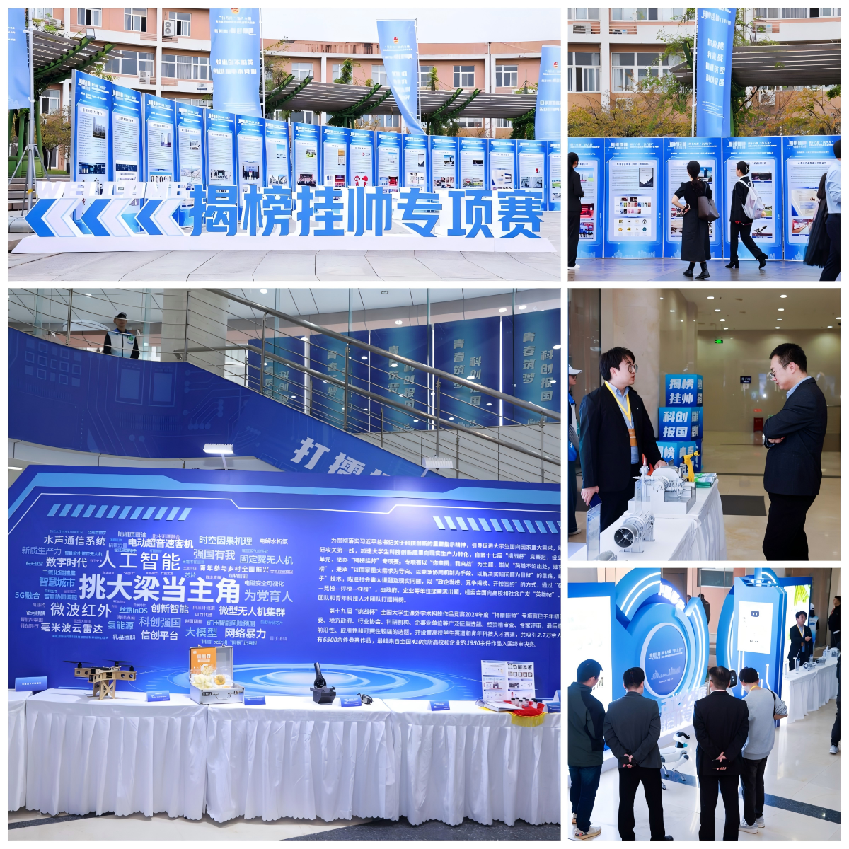 据悉,本届赛事设置高校学生赛道和青年科技人才赛道,共吸引2.7万余人参加,共有6500余件参赛作品,最终来自全国410余所高校和企业的1950余件作品入围终审决赛,终审决出各选题“擂主”、特等奖等奖次最终获奖团队。终审决赛期间,在学校还举办了“揭榜挂帅”主题展,邀请56个发榜单位围绕赛题解读展示,同时邀请部分发榜单位和参赛团队以“科技作品展示”“科普分享”“互动体验”等形式演示及分享科技创新领域的最新成果和发展趋势,进一步凝聚引导青年聚焦“国之大者”和“卡脖子”技术。学校还安排了我院博物馆等校内研学场馆,吸引了大批参赛师生参观学习。