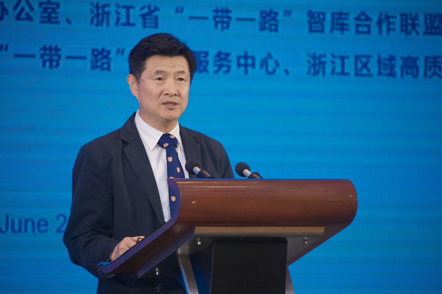 6月8日,浙江省推进“一带一路”建设大会和浙江省“一带一路”智库论坛在宁波举行。省委副书记、省长袁家军主持,省委书记车俊出席会议并发表重要讲话。来自印度尼西亚、立陶宛、卢森堡、土库曼斯坦、斯洛伐克、肯尼亚、约旦、泰国、阿曼、捷克等60余个国家和地区的140多位外宾,200余名中外企业家代表出席大会。校长宋明顺应邀出席会议并在浙江省“一带一路”智库论坛上,以“发挥优势产业标准作用 共筑‘一带一路’互联互通”为题作了精彩的学术报告。论坛由浙江省发展规划研究院党组书记、院长周华富主持。