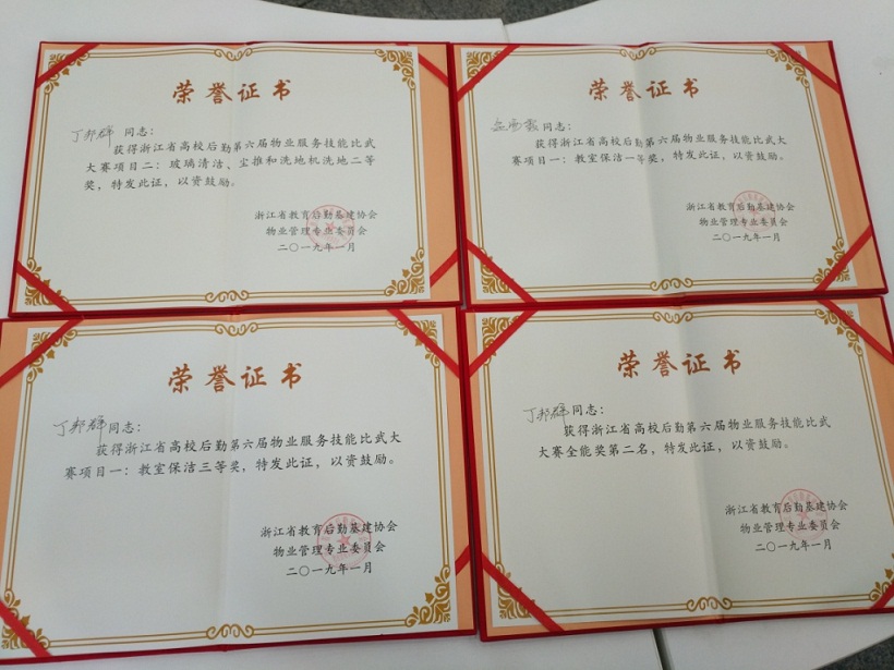 1月5日,浙江省高校物业专业委员会第六届物业服务人员技能比武大赛在温州大学举行。全省共30余所高校近百名物业工作人员通过竞赛互相交流、切磋技能。经过激烈角逐,我校后勤服务中心物业管理部孟海霞同志取得个人单项一等奖,丁邦群同志取得个人项目二等奖、三等奖以及业务技能综合考核全能第二名的好成绩。比赛期间,“量大物业人”良好的职业素养、精神风貌和业务素质,得到了现场观摩领导和行业专家的一致好评。