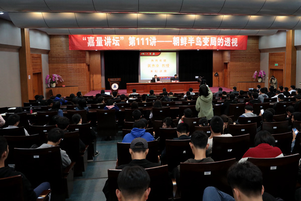 11月2日下午,联合国国际法委员会委员、外交部国际法咨询委员会主任委员黄惠康教授做客我校“嘉量讲坛”,与广大师生分享了朝鲜半岛变局的透视。报告会由校党委副书记陶伟华主持。