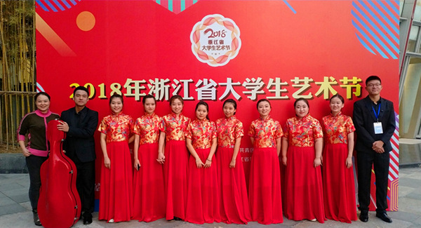 10月31日,由浙江省教育厅、浙江省文化和旅游厅厅、共青团浙江省委共同主办的2018年浙江省大学生艺术节在宁波音乐厅顺利闭幕。我校大学生艺术团和现代科技学院大学生艺术团在本届大学生艺术节中发挥优异,荣获一等奖6项,二等奖1项,学校获优秀组织奖,校大学生艺术团均钟合唱团的合唱作品《乡谣》参加闭幕式演出。