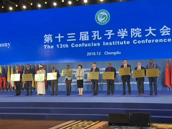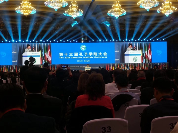 12月4-5日,以“改革创新促发展,携手同心创未来”为主题的第十三届孔子学院大会在成都举行,国务院副总理、孔子学院总部理事会主席孙春兰出席大会开幕式并发表主旨演讲,教育部部长、孔子学院总部理事会副主席陈宝生主持开幕式。来自154个国家和地区的1500多名代表出席大会,我校校长宋明顺和国际处负责人首次应邀出席大会。