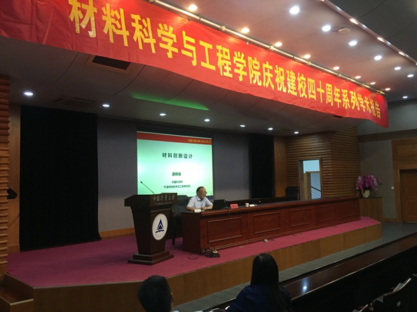 薛群基院士从创新设计动力、材料如何促进创新设计、创新设计对材料的需求与推动、材料创新设计路线和材料创新设计的建议共5个方面做了系统的讲解。他指出“料要成材,材要成器,器要好用”是材料设计的原则;高性能化是材料和器件创新设计的主要要求;功能化材料设计是智能化制造和绿化制造的材料保障。薛院士详细介绍了3D打印、自组装、材料基因组计划等材料与创新设计的前沿动态,为材料学院师生的学习科研打开了新的视野,启发了新思路。