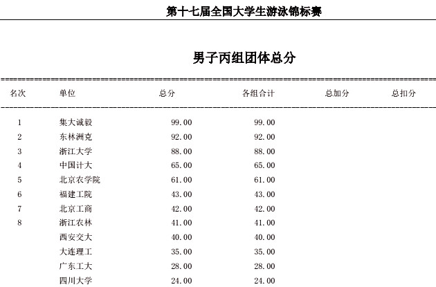 我校游泳队首次参加全国大学生游泳锦标赛,由谭成威博士为教练共7名运动员参赛。我院健儿经过奋力拼搏,共获得三枚金牌,二枚银牌,一枚铜牌,参赛项目全部进入前八名,获团体总成绩第四名,章浩峰同学在个人200米混合泳中以2:31.98的成绩破该项目大学生男子丙组全国纪录(2:32.29)。本次比赛是我校参加全国计时类竞赛项目历史最好成绩,也是继上半年在浙江省大学生游泳比赛中获得6金、6银、2铜的又一突破。