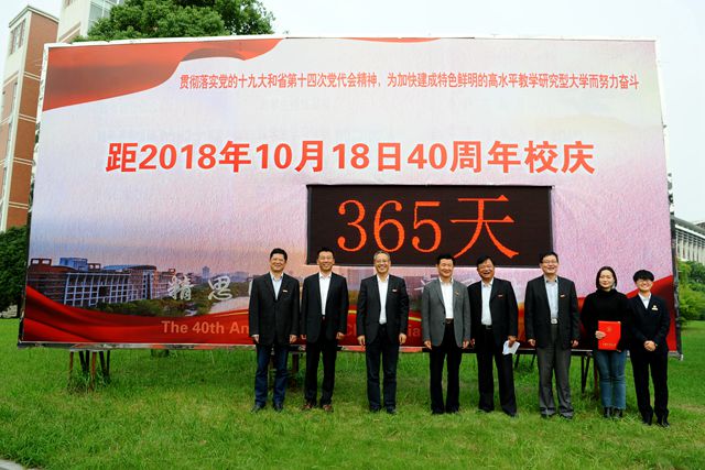 在这个举国欢庆十九大顺利召开的喜庆日子里,我校迎来了40周年校庆倒计时。校党委书记张土乔、校长宋明顺、校党委副书记徐涌金、校纪委书记王小华、校友代表海克斯康精密事业部总经理王振环、校庆吉祥物设计者王韵,40周年校庆筹备工作委员会成员和100余名师生代表参加倒计时仪式。校发展委员会副主任、40周年校庆筹备工作委员会常务副主任冯时林主持仪式。