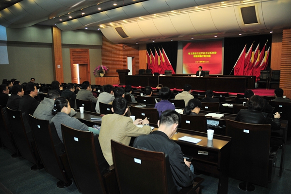为教育引导我校中层干部全面系统掌握十八大以来习近平总书记系列讲话的精神实质,4月2日上午,学校在闻厅二楼报告厅举行全省学习贯彻习近平总书记系列讲话精神集中轮训班第八班开班仪式。浙江工业大学副校长、党委委员陈杰应邀作专题报告。报告会由校党委副书记徐涌金主持,学校全体中层干部、马克思主义学院教师、机关各党支部书记参加了报告会。