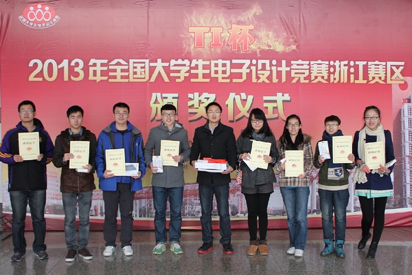 12月24日下午,2013全国大学生电子设计竞赛浙江赛区颁奖大会在杭州电子科技大学隆重举行。我校电子设计竞赛指导组袁月峰老师指导的任峻辰、陈容峰、王培林学生团队荣获全国一等奖,取得了我校参加此项赛事以来的新突破。我校本部学子还获得国家二等奖2项,浙江省一等奖2项、省二等奖11项、省三等奖9项,获奖率达78.1%,总成绩和获奖率均居浙江省高校前列,再次取得历史新高。