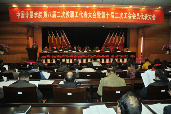 12月27日下午,我校第八届二次教职工代表大会暨第十届二次工会会员代表大会在闻厅二楼会议室隆重开幕。大会正式代表163人参加会议。校党委书记胡建成,校长林建忠,党委副书记徐涌金,副校长蒋家新、俞晓平,纪委书记王小华,党委委员、组织部部长陈希武,党委委员、学生处处长范庆瑜等出席会议,非教代会代表的各职能部门、学院党政主要负责人和分工会主席列席会议。会议由党委副书记徐涌金主持。