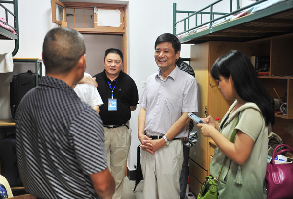 校领导还深入学生宿舍,看望2013级新生。每到一处,校领导都与新生及家长亲切交谈,详细询问新生学习和生活情况,并勉励新生来到大学后要尽快转变角色,适应大学生活,提高自身能力,并预祝他们愉快地度过大学生活。