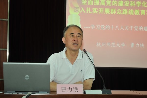 培训班还安排杭州师范大学曹力铁教授作了题为“全面提高党的建设科学化水平,深入扎实开展群众路线教育实践活动”的专题讲座。因此,本次培训班既是十八大精神的培训,又是群众路线教育实践活动的动员,希望广大教工党支部书记深入学习领会培训精神,在实际工作中抓好落实。