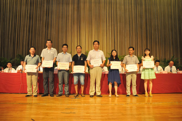 大会先后对我校获得2012-2013年国家、省部级及厅局级奖励与荣誉称号的个人和集体,以及获得2012-2013年校级奖励的个人和集体进行了表彰。国家技术发明二等奖获得者代表、光学与电子科技学院张在宣教授从党委书记胡建成手中接过了奖状。获得教育部高等学校科学研究优秀成果奖、省科学进步奖、省“杰出青年”、省高校优秀教师、省五一巾帼标兵、省优秀讲师团、省巾帼文明岗等荣誉称号的110名优秀教师代表上台接受表彰。党委副书记徐涌金主持会议。党委副书记陶伟华,副校长俞晓平、宋明顺宣读了表彰文件。