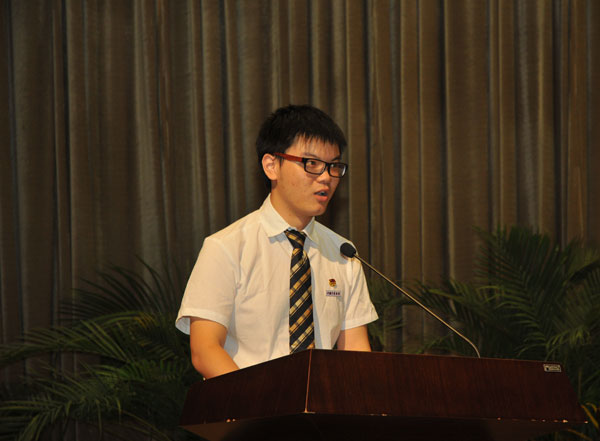 学生代表吕少龙上台代表全校同学向老师们致以最衷心的感谢、最崇高的敬意和最真诚的祝福。他号召全体同学重视主动学习,用积极的状态来回应老师的教诲;主动投身实践,用实践来体会老师的教诲;甘于热忱地奉献,用奉献来彰显老师的教诲;敢于迎接挑战,用超越来回报老师的教诲。