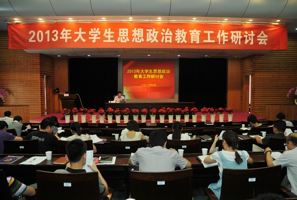 7月5日-6日,我校2013年大学生思想政治教育工作研讨会在闻厅二楼小报告厅召开。校党委书记胡建成,党委副书记陶伟华,学生工作领导小组成员,各二级学院党总支书记、副书记,马克思主义学院负责人,全体辅导员,党委学工部、党委宣传部、校团委全体人员参加了会议。会议由陶伟华主持。