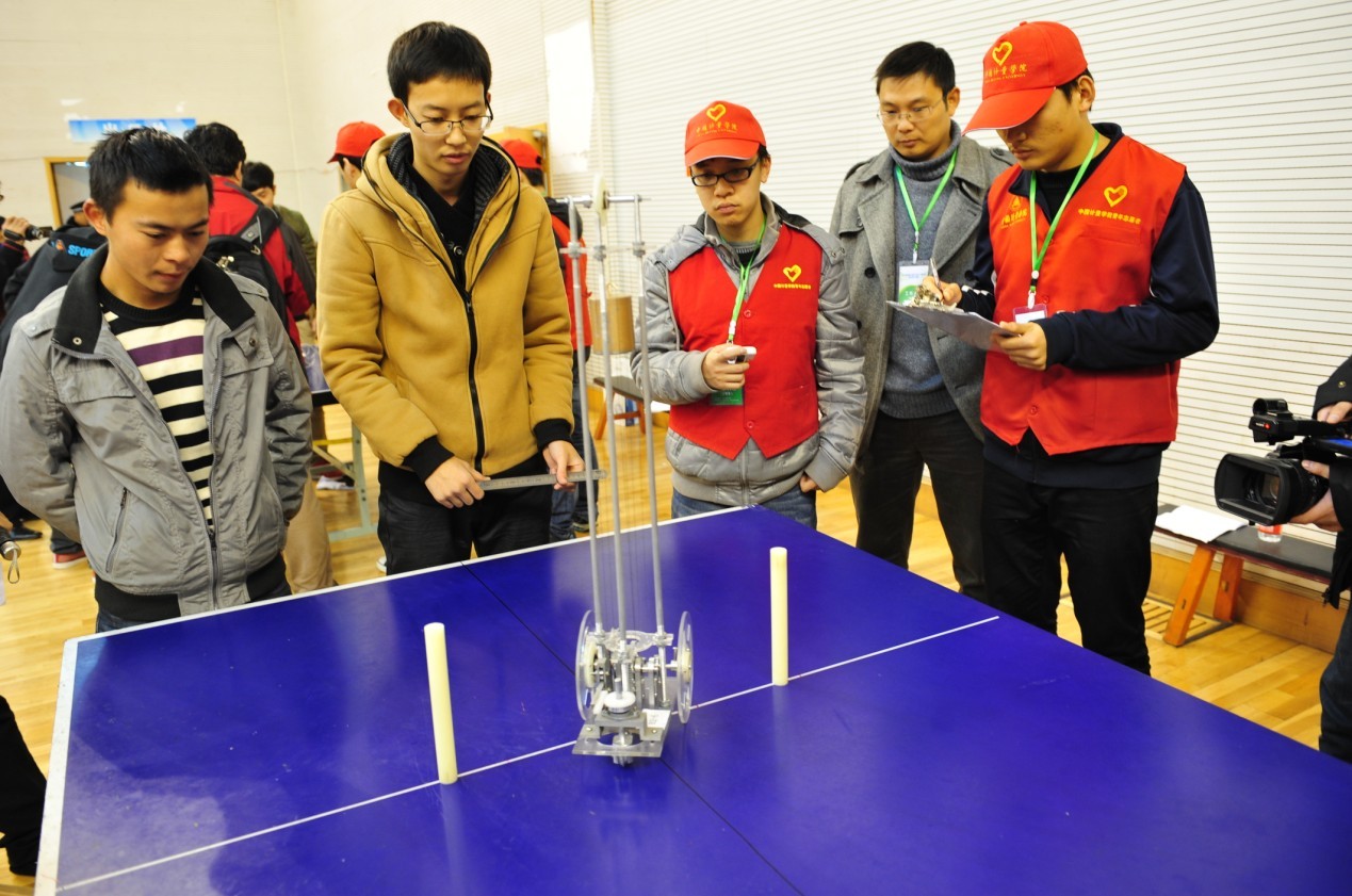 “无碳小车”的赛场竞技,充分体现了“创新设计能力、制造工艺能力、实际操作能力、工程管理能力”四方面的要求,各参赛队伍研制以重力势能驱动的具有方向控制的自行小车,依靠悬挂在顶部的重物将重力势能转化为小车的动能,经过角度的调节,使小车能绕过障碍物,走出S弧线或8弧线。选手们纷纷亮出精心设计制作的作品,细心调试,认真操作,力求发挥出最佳水平。在激烈的角逐中,由我校工程训练中心教师指导的八支参赛队伍的“无碳小车”绕障多、行走远,在各参赛队伍中遥遥领先,获得多项第一,为学校赢得了荣誉。