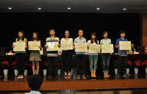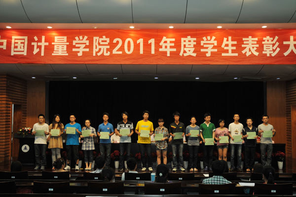 会议首先由陶伟华副书记宣读获奖表彰文件。对获得校级以上学科竞赛、国家奖学金、各类专利、浙江省红色经典歌曲合唱大赛及浙江省第三届大学生艺术展演活动奖励的学生进行表彰。2011年我校学生在学科竞赛、学生专利及发表论文等方面取得了优异成绩, A类学科竞赛中获得715人次获得238项奖励,其中全国奖23项,省三等奖以上160项;共获准各类专利723项,其中发明专利3项、实用新型专利174项;共发表论文164篇,其中EI/SCI收录论文14篇、核心期刊25篇。在2011年省属本科院校教学业绩考核中反映学生创新实践成果的学科竞赛、学生专利、发表论文3项指标综合得分全省排名第一。随后,校领导和有关职能部门负责人为获奖学生代表颁发了证书。
