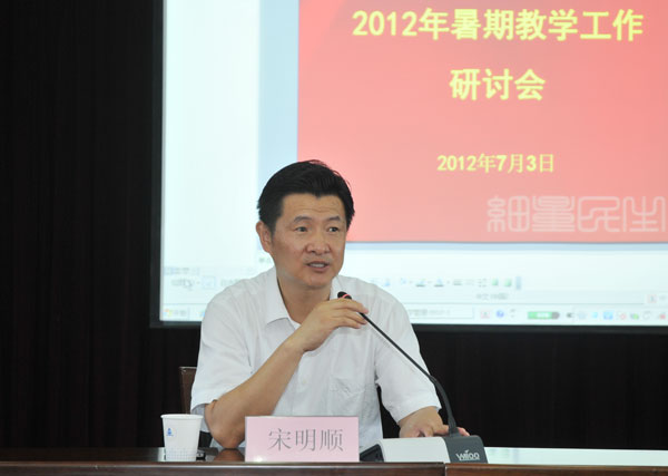 7月3日,我校在明德楼B6会议室召开了2012年暑期教学工作研讨会。浙江大学本科生院常务副院长陈劲教授、各二级学院教学院长(助理)、专业负责人、教学秘书、教务员、教务处全体人员参加了会议。会议由宋明顺副校长主持。