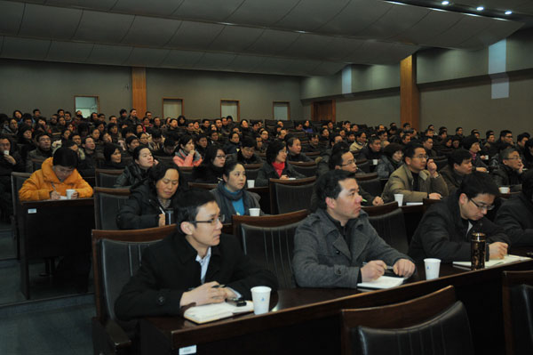2012年是学校实施五年规划承上启下的重要一年。2月17日上午8:30,学校在闻厅二楼报告厅召开新学期中层干部会议,部署2012年主要工作任务。校领导,中层干部,校级以上(含校级)重点学科带头人,民主党派负责人,正、副处调研员,各学院(部)院长助理、各学院(部、中心)办公室主任参加了会议。会议由党委书记于永明主持。