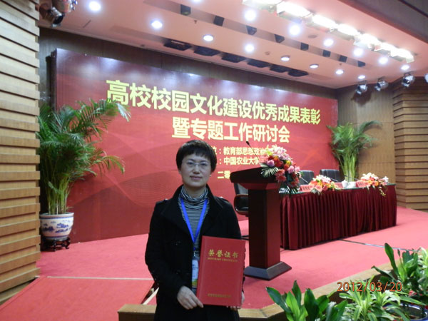 3月20日,由教育部思想政治工作司举办的高校校园文化建设优秀成果表彰暨专题工作研讨会在北京召开,我校选送的“传承我院文化,思量国计民生——中国我院学院特色校园文化建设的探索与实践”荣获2011年高校校园文化建设优秀成果评选一等奖。校党委宣传部部长姜羡萍参加了研讨会并接受了表彰。
