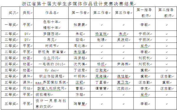 我校学生在浙江省第十届大学生多媒体作品设计竞赛中喜获佳绩