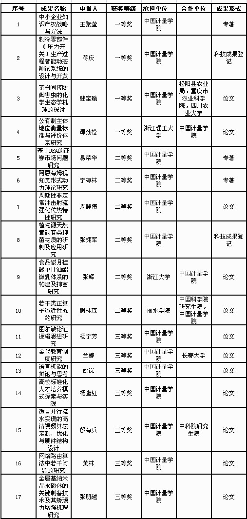 根据《浙江省高等教育学会、浙江省教育厅关于公布2011年高等学校科研成果奖获奖项目的通知》文件(浙高教学[2011]10号),我校共有17项成果获奖,其中,一等奖4项,二等奖6项,三等奖7项,主要分布在电子、物理、管理等学科,文学、外语等也有所突破。