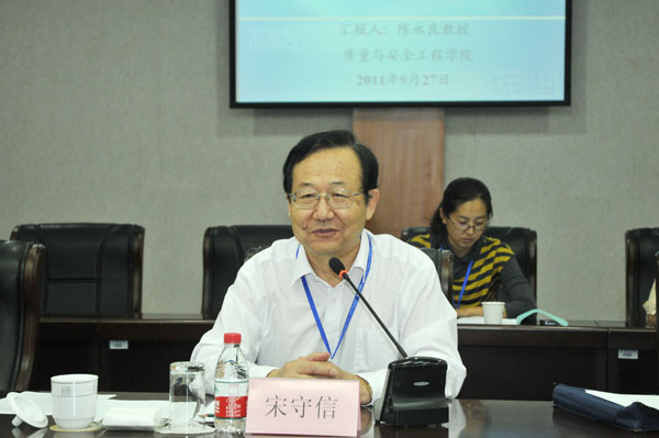 受全国工程教育专业认证专家委员会委托,以北京交通大学原副校长宋守信教授为组长,河海大学原校长姜弘道教授为观察员,首都经贸大学钮英建教授、西安建筑科技大学杨振宏教授、中国特种设备检测研究院沈勇研究员、中国市政建设有限公司夏秀英高级工程师为组员,北京交通大学侯永峰副教授为秘书的国家工程教育专业认证现场考查组一行7人,于9月27日至9月29日对我校“安全工程”专业进行工程教育专业认证现场考查。这是我校首次进行的工程教育专业认证。