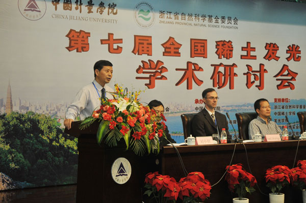 此次会议是我国稀土发光材料领域的一次盛会,由中国稀土学会发光专业委员会和中国物理学会发光分科学会主办。中国科学院长春应用化学研究所党委书记张洪杰、浙江省自然科学基金委员会办公室主任鲁文革等领导和嘉宾出席大会开幕式并致词。我校校长林建忠出席会议并致欢迎词。