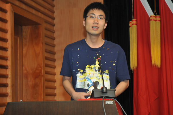 学科竞赛指导教师和获奖学生代表分别作了发言,从教师和学生角度谈了对于科技创新活动的认识、体会、理解和经验,并号召更多老师和学生积极参与进来,为开创我校大学生科技创新活动的新局面而努力。