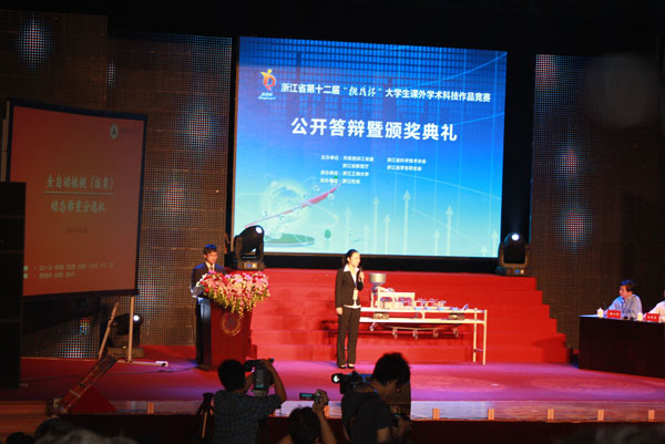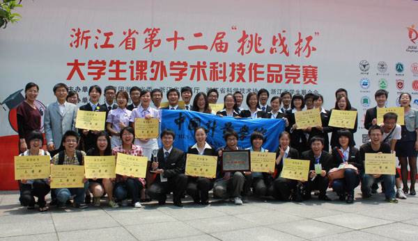 5月26日至28日,由共青团浙江省委、浙江省教育厅、浙江省科学技术协会、浙江省学生联合会共同主办的浙江省第十二届“挑战杯”大学生课外学术科技作品竞赛决赛在浙江工商大学隆重举行,本次竞赛的口号是“心随创意不止,行迎挑战无界”,来自全省40多所高校的作品参加了决赛。在全体队员、指导老师和二级学院的共同努力下,我校学生表现优异,共荣获23项省级奖项,其中特等奖2项,一等奖3项,二等奖11项,三等奖7项的好成绩,这是我校参加省“挑战杯”大学生课外学术科技作品竞赛以来,获奖数量最多,获奖等级最高的一次。同时,学校还获得了本届“挑战杯”竞赛的“优秀组织奖”。