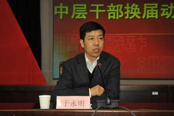 12月8日下午,我校新一轮中层干部换届动员大会在闻厅二楼报告厅召开,党委书记于永明作动员讲话,全校中层干部、民主党派负责人,学科负责人,中层后备干部,管理人员五级岗(校内)参加了会议。动员会由党委副书记、纪委书记徐涌金主持。