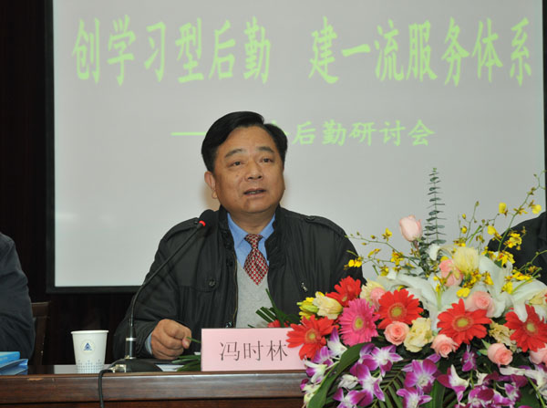 副校长冯时林首先讲话,他指出召开此次论文研讨会是适应形势发展的需要,是学习实践科学发展观的重要体现。后勤系统要坚持用中国特色社会主义理论理论体系武装头脑;要坚持解放思想,提升开拓创新能力;要建设学习制度和机制,使崇尚学习的氛围进一步浓厚;要坚持理论联系实际,建一流服务体系。通过理论学习,进一步深化平安校园建设,加强综合治理,强化科学优质服务,改善服务态度、提高服务质量,加强效能建设,保证在工作中做到“零失误、零事故、零投诉”,理论联系实际,不讲空话,多办实事,实实在在地为学校建设发展作贡献。要求后勤各个部门在今后的工作中一要解放思想,进一步深化后勤改革;二要深化后勤体制和运行机制的改革,完善各项保障措施;三要按照“公益性”原则,建立物价波动调控机制;四要加强后勤服务资源整合,进一步调整机构,提高效能;五要加强干部队伍建设,提高后勤服务的有效力。