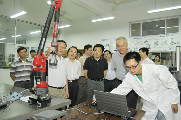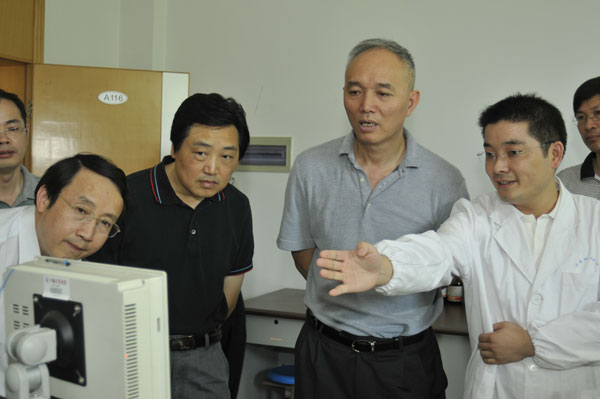 蔡奇部长一行在学校党政领导班子的陪同下还考察了我校国家磁性材料及其制品质量监督检验中心、浙江省“重中之重”学科实验室和生物我院及检验检疫技术实验室。他仔细听取了相关仪器设备的介绍,指出产学研相结合这条路很好,一定要坚持走下去。检测工作非常重要,质量问题、食品安全问题是人民群众最关心的问题,学校的实验室可以建成开放式的,提供公共检测平台,使高校的先进设备和人才优势更好地转化成生产力,更好地为经济社会发展服务。
