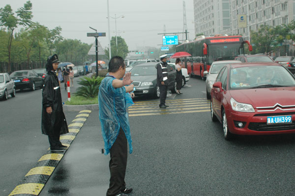 受台风影响,11号凌晨,杭城下起了瓢泼大雨,早上8点多,雨势依然很大。风雨中,身披雨衣的小红帽们热情耐心地为新生提供“一对一”的服务,保安们撑着伞指挥着车辆停放;报到大厅,各报到点紧张忙碌的工作人员,充分的准备工作,细致周到的服务,简化的报到流程……一起温馨铺陈了一条从车站到校园到寝室的快速通道,让新生在入学的那一刻就充分感受到量院大家庭给予的关爱!