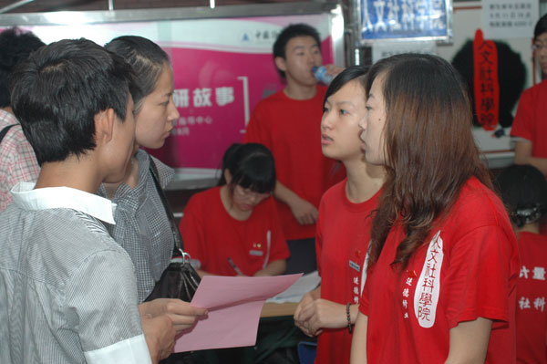 “这个专业是学什么的?就业前景怎么样?考研率有多少?”来自陕西的新生、2010级知识产权专业的岳晓羲刚到学校就提了一大堆问题。幸好学院的专业教师刘瑾在报到现场坐阵,立即简明扼要地向新生和家长作出了解答。“请家长放心,我们接下去会有一系列的始业教育。马上就会召开新生家长会上,学院领导和专业教师都会到场,到时有什么问题可以尽管提。”刘瑾说。