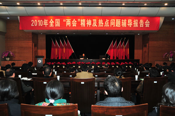 近年来,“两会”受到亿万人民群众越来越多的关注,影响力越来越大。“两会”随时代变迁呈现出的新气象、新特点也折射出中国前进的步伐。为此,我校将其作为上半年校院两级理论学习中心组学习的一个专题,让大家更好地学习贯彻“两会”精神,做好今年的工作。