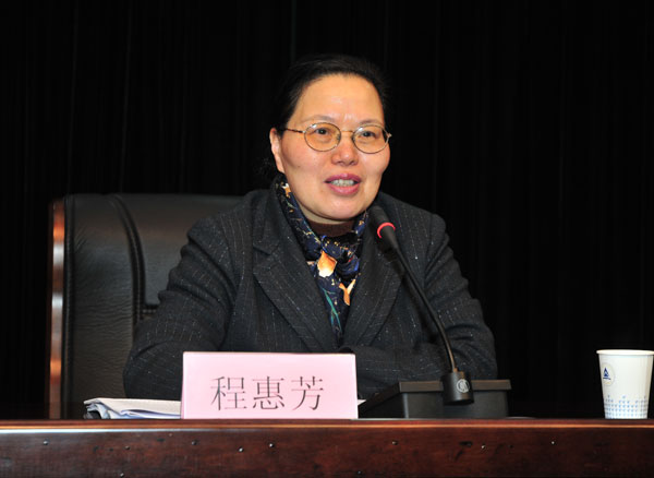 3月31日下午,全国人大代表、浙江工业大学程惠芳教授应邀来我校做了2010年全国“两会”精神及热点问题辅导报告。党委书记于永明以及全校中层领导干部、民主党派负责人、副处以上调研员、辅导员等参加了报告会。报告会由校党委副书记陶伟华主持。