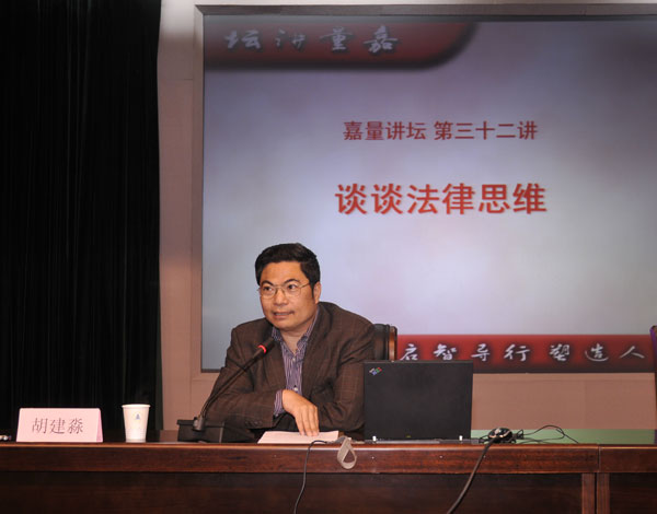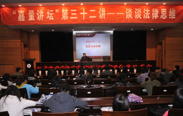 11月12日下午,我校“嘉量讲坛”第三十二讲开讲。浙江工商大学校长胡建淼在闻厅与同学们畅谈了法律思维。