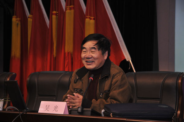 在讲座的最后,对于同学们提出的一些他们所热切关注的问题,如儒家人文思想与现代科技思维的关系问题,儒学原典与当今社会的阅读问题等等,吴光都做了精辟的回答,赢得了同学们满意的掌声和美丽的鲜花,在同学们的感谢声中吴光结束了此次讲座。