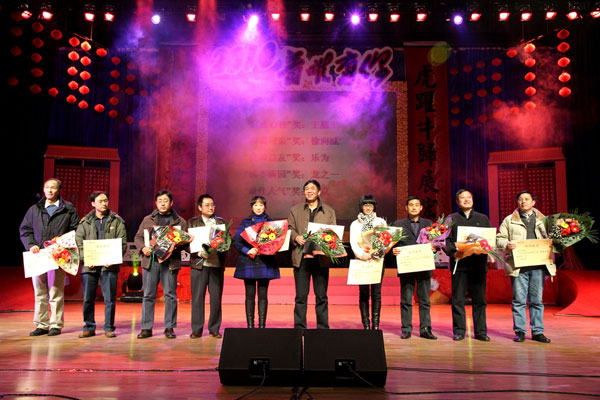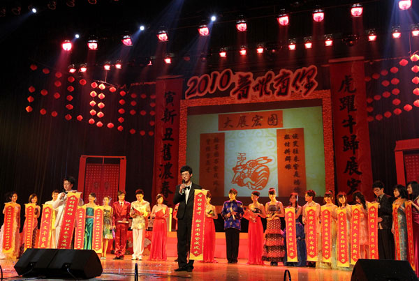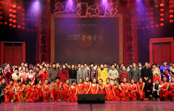 手捧荣誉证书和鲜花的10位老师瞬间成为了晚会的焦点。在2009年的最后一天,接受学生给予的荣誉和祝福,老师们感到特别幸福。获奖的每一位老师都是由全校学生自己评选产生的。他们中有连续两年被学生选中最喜欢老师的龙之一、李惊涛,也有执教年头并不长的青年教师赵士龙、肖丹。“能够和我们最喜欢的老师一起跨年,觉得很幸福。我祝福每一位老师都能身体健康、工作顺利,桃李满天下!”07级英语专业的沈琳清说。