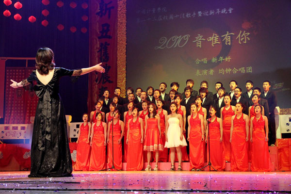 “十、九、八、七……”2009年12月31日晚,中国我院学院的1500名师生欢聚在嘉量大会堂,在歌声与祝福中共同告别难忘的2009,迎接崭新的2010。校党委书记于永明在新年致辞中,祝愿全校师生员工在新的一年里吉祥如意、幸福安康。校长林建忠与施淑静老师合奏了淡雅柔美的小提琴钢琴协奏曲,作为新春的贺礼送给学校的每一位师生。“在新的一年里,希望自己能顺利找到工作,希望所有的同学都能更努力、更勇敢地去面对自己的青春和未来!”已经是大四生的吴跃站在2010年的起点,许下了自己的新年愿望。