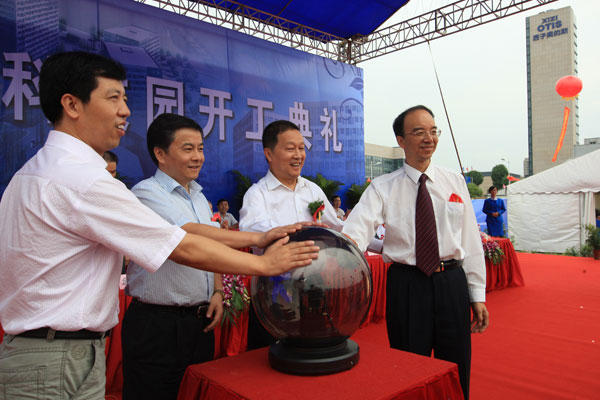 10时28分,金德水副省长宣布开工。于永明书记与江干区人民政府蔡仲光区长、浙江工业大学校长张立彬、浙江理工大学党委书记费君清共同按动开工圆球,桩机同时启动,现场燃放礼花和鞭炮,浙江省国家大学科技园正式开工建设。