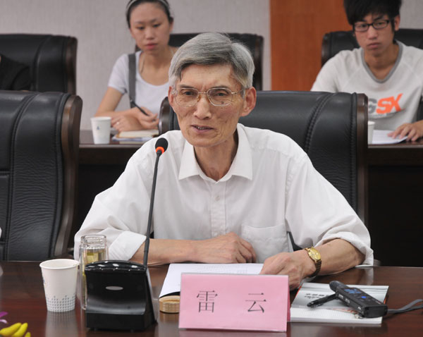 “作为一名党的干部,为党工作,我只是做了我应该做的事情,感到实在是很平凡。如果说这几十年来,我经受了一些考验,对党做了一些有益的事情,归根到底是因为信仰。信仰是根本,是第一位的。”雷云老师谦虚、真诚和质朴语言感动着现场的每一个人。他说,对青年一代来说,特别是大学生,如何在年轻时候就确立起对马克思主义的坚定信仰是非常重要的问题。座谈会上,雷云老师根据自己学习、生活和工作的亲身体验,与同学们分享了树立正确的世界观、人生观、价值观的三个渠道。他指出,第一条渠道就是学习马克思主义的基本理论,特别是学习马克思主义的立场、观点和方法,也就是历史唯物主义和辩证唯物主义。第二是要接触社会,接触实际,要了解人民,从广大劳动人民当中来熏陶自己。第三是要严格地要求自己,加强对自己的自我改造。通过与大学生的接触与交流,雷云老师觉得青年学生都非常可爱、谦虚和纯真,他真诚地希望同学们能在学习期间搞好学业,树立起正确的世界观、人生观和价值观,因为这将决定我们一生的道路。