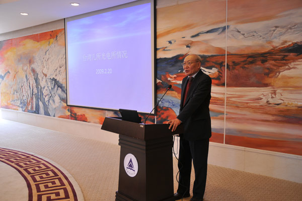 中国科学院院士、光学仪器专家金国藩结合自己台湾访问的体会,用PPT展示了《台湾几所光电所的情况》,其中包括台湾大学、台湾交通大学、清华大学、工研院的研究情况,他重点介绍了台湾大学光电工程所和台湾交通大学光电工程系正在做的研究,指出目前显示、能源(节能减排)和LED这三个研究方向是最受关注的。他指出,台湾的成果转化这方面做的特别好,而大陆这方面还很欠缺,我院和检测非常重要,近年出现的苏丹红、三氯氰胺等事件都反映出我国的检测技术还比较落后,不够精密。中国我院学院办的很有特色,希望在这两个方面做出一些成果,真正造福社会。