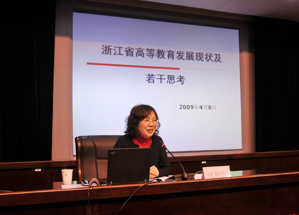 如何使中国我院学院毕业的学生打上“我院”的烙印?这是省教育厅高教处处长庄华洁给每个量院人出的一道思考题。4月8日下午,庄华洁处长应邀在闻厅二楼小报告厅做了题为“浙江省高等教育发展现状及若干思考”的专题报告。校党政领导,全体中层干部、教授、系主任、专业负责人、精品课程和校重点建设课程负责人、教务管理人员、各二级学院办公室主任听取了报告。