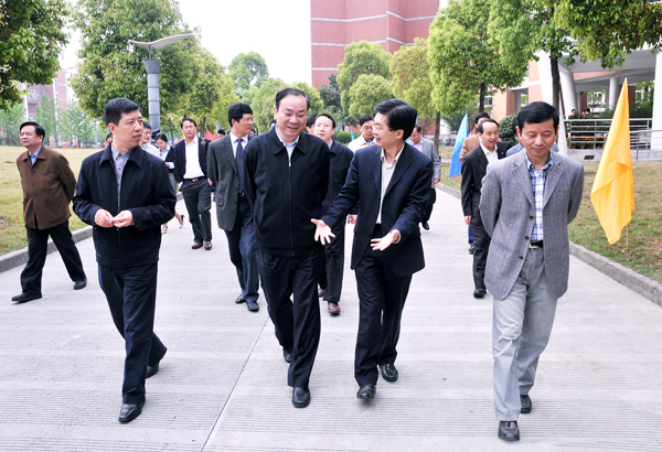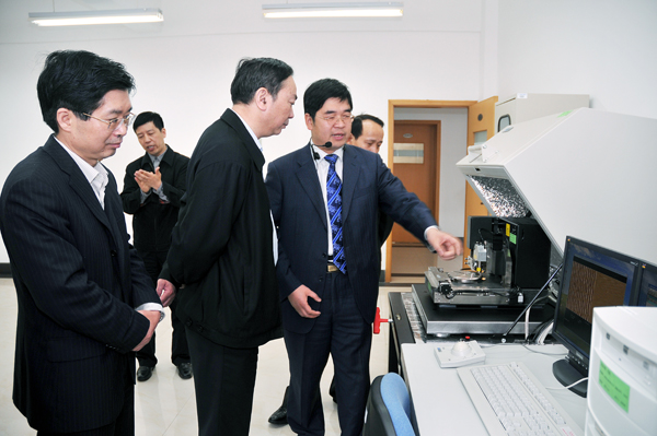 4月17日上午,省委常委、宣传部长黄坤明,副省长郑继伟在省政府副秘书长马林云、省委办公厅副主任胡庆国、省教育厅厅长刘希平、省教育厅副厅长李鲁等的陪同下来我校专题调研高校服务经济转型升级工作。在校党委书记于永明,校长林建忠,党委副书记徐涌金、陶伟华,副校长侯宇、冯时林等校领导的陪同下,黄坤明部长、郑继伟副省长一行参观考察了我校国家磁性材料及制品质量监督检验中心和省重中之重学科“仪器科学与技术” 学科实验室。