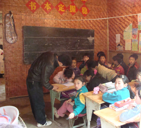 青川县最偏远的马公乡村小,四个年级的学生在一个教室里上课。