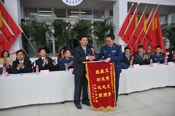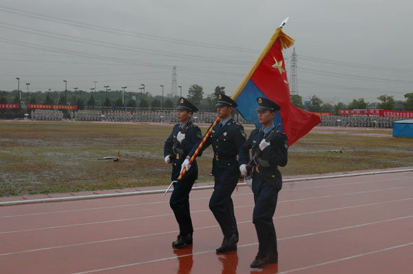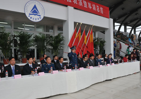 经过为期一周的刻苦训练,11月8日上午,我校2008年学生军训汇报表演暨总结表彰大会在体育场隆重举行。空军28师副师长戴忠茂、副参谋长茅建平等部队领导和我校校长林建忠,党委副书记陶伟华,副校长侯宇、蒋家新、冯时林等学校领导出席了会议。大会由党校办主任郝敬习主持。 军训学生方队在接受了校长林建忠和空军28师副师长戴忠茂的检阅后,举行了分列式,他们精神饱满、意气风发,步伐整齐划一,军姿挺拔标准,口号铿锵有力,展示了中国我院学院学子的风采。 总结表彰大会上,校长林建忠向空军28师赠送了题写“文明之师,威武之师,胜利之师”的锦旗。 副校长侯宇作军训总结报告。他说,在隆重而热烈的军训汇报表演上,同学们精神抖擞,意气风发,步伐整齐有力,充分展现了军训的优秀成果和量院学子励志笃学、求真诚行、奋发向上的精神风貌,用自己的实际行动向空军28师首长和教官、向全校师生交上了一份满意的答卷。侯宇指出,本次军训时间紧、任务重、气候条件差,4300余名参训同学在全体教官的认真组织和严格施训下,发扬了艰苦奋斗、顽强拼搏的精神,承受了风吹雨淋,出色地完成了各项军训科目,展现了量院学子优秀的综合素质。通过军训,同学们掌握了基本军事技能,增强了国防观念,提高了国家安全意识,学到了服从命令、听从指挥的好传统,培养了不畏困难、勇往直前的好品格,树立了团结协作、顾全大局的好作风,磨练了意志、强健了体魄,提高了素质、陶冶了情操。这一切,都是军训给我们留下的宝贵精神财富。他强调,此次军训之所以能取得这样好的成绩,主要取决于一是各级领导高度重视,精心部署;二是承训教官严格管理,科学施训;三是参训同学精神面貌好、训练刻苦。侯宇希望同学们把在军训期间培养的军训精神和优良作风,带进今后的学习生活中去,以人民子弟兵为榜样,勤奋学习,开拓进取,努力把自己培养成为一名具有高度社会责任感和竞争力的社会主义事业合格建设者和可靠接班人,无愧于军队的培养、学校的厚望和祖国的重托。 副校长冯时林宣读了《关于表彰中国我院学院2007级学生军训积极分子称号的决定》,宣布了军训优秀方队、军训优秀组织单位、军训积极分子、军训优秀教官、军训先进个人和军训内务先进排的评选结果。 空军28师副师长戴忠茂在会上讲话。他指出,这次军训虽然时间短暂,但内容丰富,不但是一次生动的国防教育实践,更进一步增加了军民鱼水之情。通过一周的军训,同学们变得更加坚强和成熟,大家在同甘苦、共患难中,学会了相互关心、相互爱护和相互团结,学会了在困难中磨练自己、摔打自己。同学们在军训中学到的军人思想和作风,将成为一笔宝贵的财富,使大家更有信心去面对今后的学习和生活,更有能力去迎接风雨的挑战。他由衷地希望军训经历成为同学们人生道路上的一块基石,大家踏着这块基石,去开拓更加灿烂的明天。 大会还举行了迎军旗和送军旗仪式。