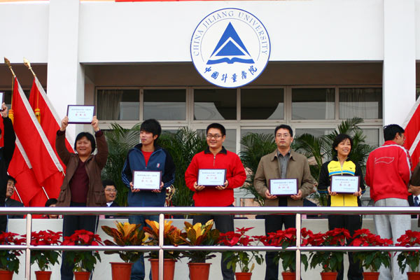 经过两天的激烈角逐,我校第五届运动会暨第二十二届田径运动会、现代科技学院第四届田径运动会划上了圆满的句号。11月14日下午,学校在体育场举行了运动会闭幕式,于永明、林建忠、徐涌金、陶伟华、蒋家新、冯时林等学校党政领导出席了闭幕式。闭幕式由党校办主任郝敬习主持。党委副书记陶伟华为运动会致闭幕词。 陶伟华指出,本届运动会是一次团结的盛会,友谊的盛会,成功的盛会。全体运动员弘扬“更快更高更强”的奥林匹克精神,顽强拼搏、团结友谊、不断超越;裁判员尽职尽责、执法准确、公平公正;工作人员积极参与、热情服务、保障有力,充分展示了我校良好的体育运动水平和道德风尚,展示了全校师生团结奋斗、锐意进取的精神风貌。本届运动会赛出了水平,赛出了风格,取得了比赛成绩和精神文明双丰收。陶伟华希望,全校上下以本届运动会为契机,继续推动我校体育教学、竞技性体育和群众性体育运动的深入开展,不断促进师生参加体育锻炼、提高身体健康水平。他希望广大教职员工把运动会激发出来的热情和顽强拼搏、超越自我的体育精神带到学习工作中去,不断取得各项工作的新突破;希望广大同学刻苦钻研,勤学苦练,发扬“励志笃学、求真诚行”的优良学风,努力培养自己成为全面发展的高素质创新人才;希望全校师生牢固树立“每天锻炼一小时,健康工作五十年,幸福生活一辈子”的理念,积极锻炼身体,强健体魄,以充沛的精力和健康的体质投入学习工作中去,为早日把学校建成国内知名的教学研究型大学作出新的贡献! 最后,信息工程学院获得了我校第二十二届田径运动会学生组总成绩第一名,经济与管理学院、质量与安全工程学院分获二、三名;机关分工会获得了第二十二届田径运动会教工组总成绩第一名,信息工程学院分工会、材料科学与工程学院分工会分获二、三名;经济与管理系获得了我校现代科技学院第四届田径运动会学生组总成绩第一名,机电工程系、信息工程系分获二、三名。至此,我校第五届运动会也完成了各项比赛,全部结束。其中,质量与安全工程学院获得了我校第五届运动会学生组总成绩第一名,信息工程学院、经济与管理学院分获二、三名;机关分工会获得了我校第五届运动会教工组总成绩第一名,信息工程学院分工会、材料科学与工程学院分工会分获二、三名。此外,大会还宣布了体育道德风尚奖和优秀组织奖获奖个人和单位名单。学校领导向获奖单位代表颁发了奖杯和奖牌。